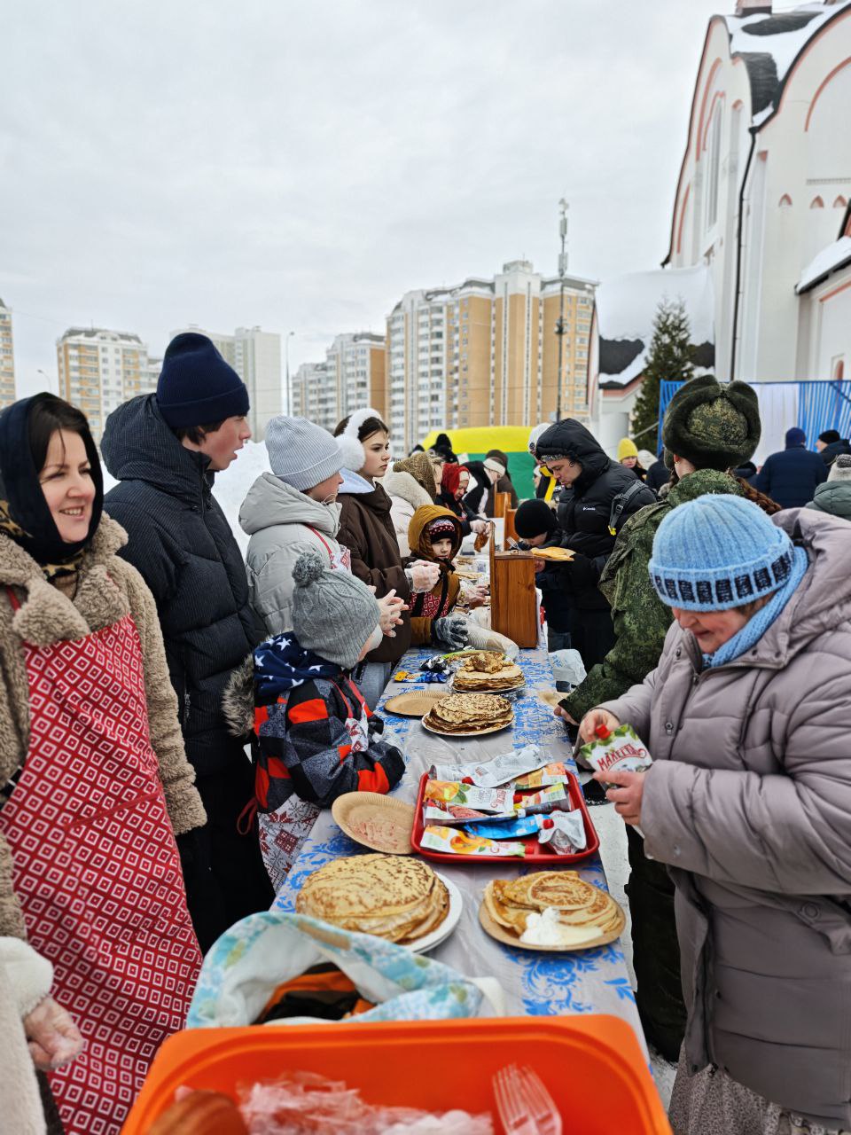 22 февраля 2026 года, в день, знаменующий окончание Сырной седмицы, площадь у храма великомученика и целителя Пантелеимона, входящего в состав храмового комплекса в честь Владимирской иконы Божией Матери в Южном Бутове, преобразилась в место шумного и радостного праздника.