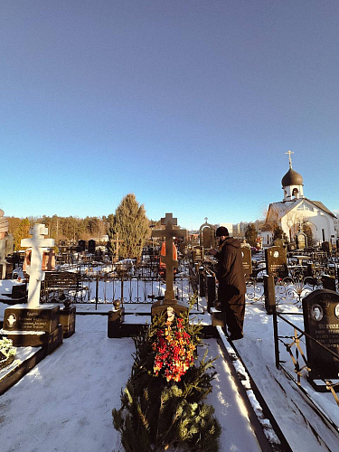 3 января 2025 года на могиле архимандрита Трифона (Кревского) на Пыхтинском кладбище была совершена панихида, которую отслужил помощник настоятеля храма Живоначальной Троицы в Конькове иеромонах Ефрем (Русу).