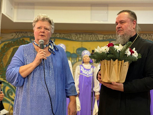 На концерте между номерами звучали поздравления с праздником Патриаршего подворья и лично игумену Дамиану в связи с 10-летием его настоятельского служения.