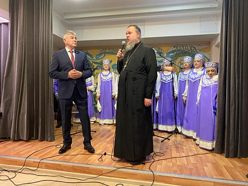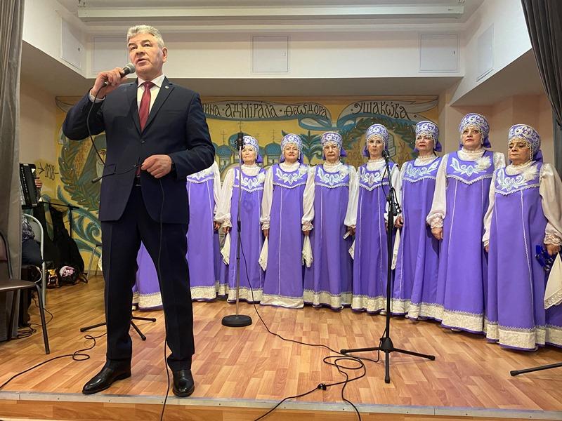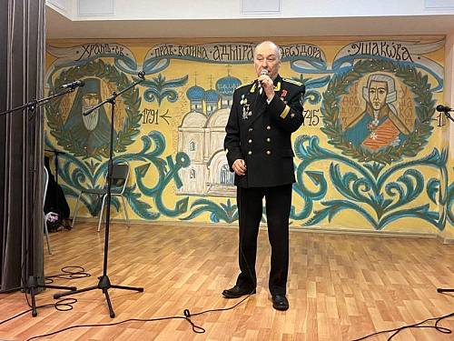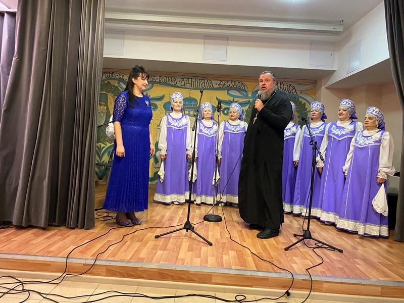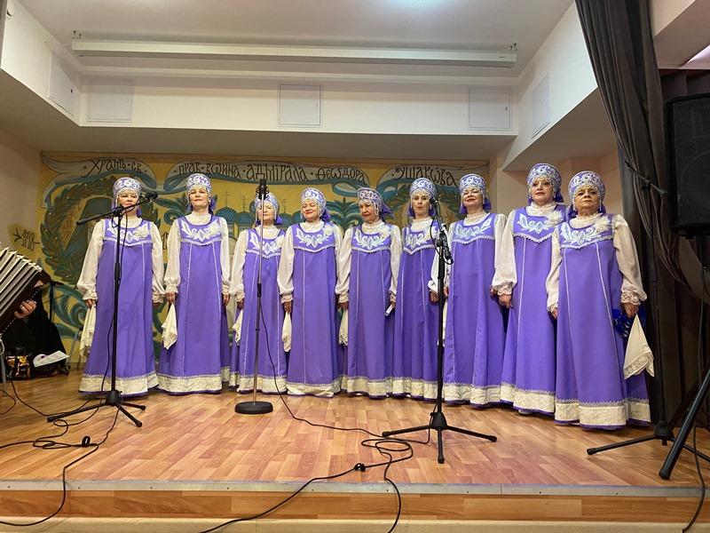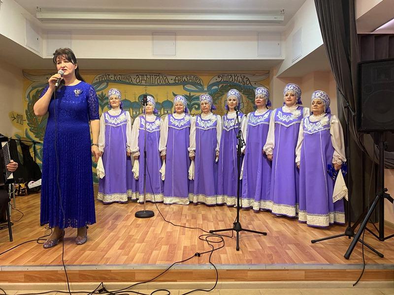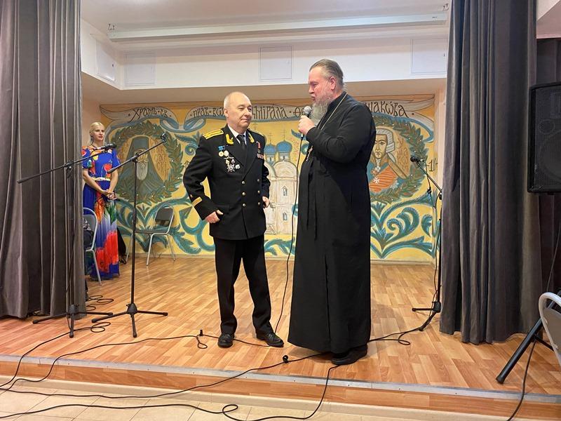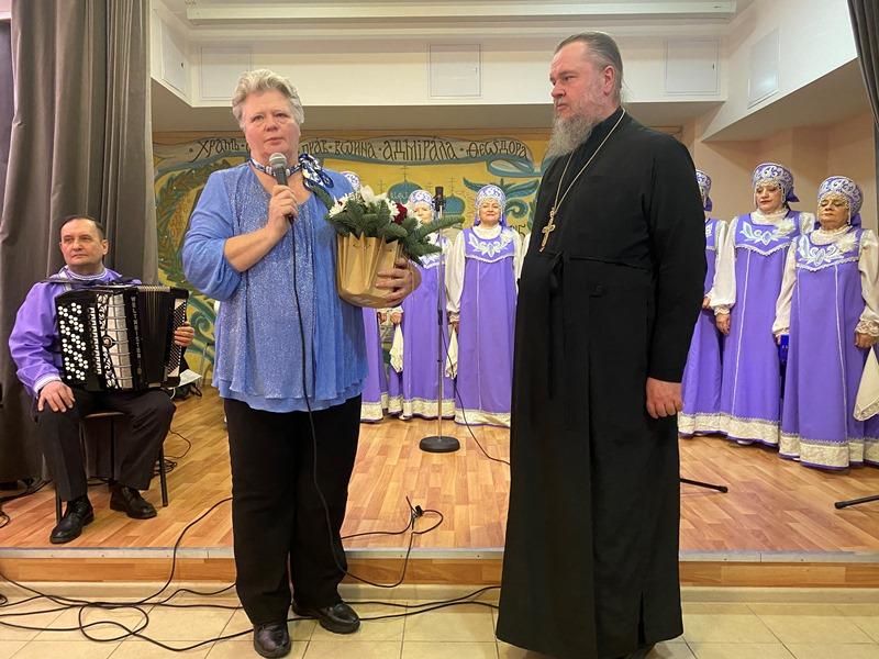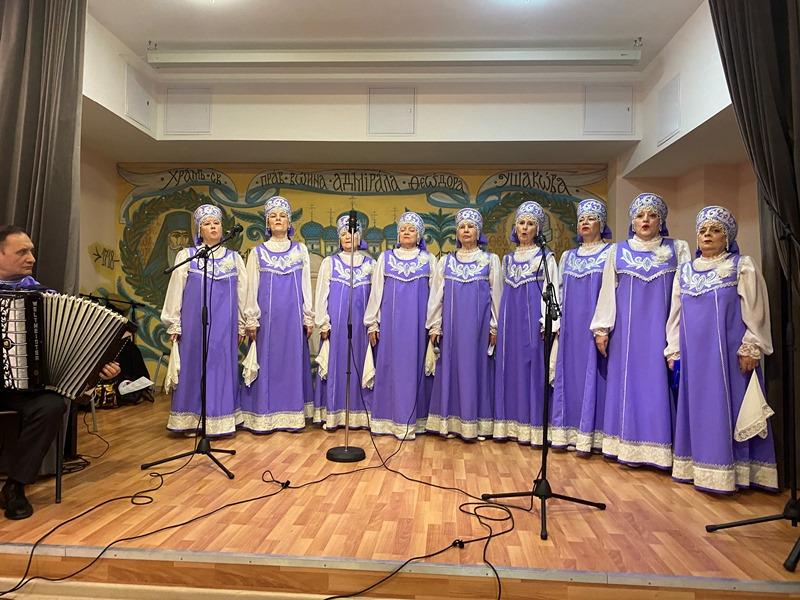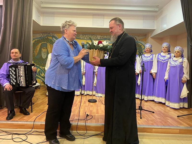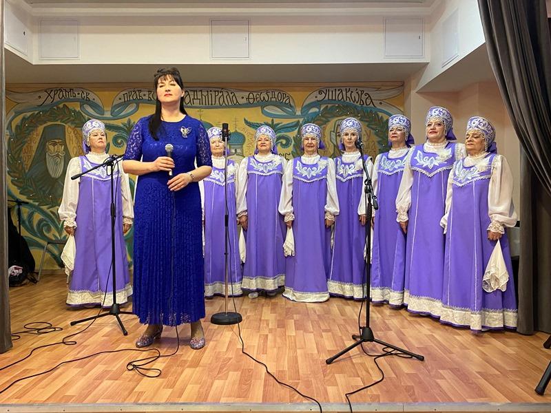 После исполнения песен морской тематики артисты хора «Сударушки» получили от настоятеля перекидной настенный календарь на 2023 год, посвященный святому адмиралу Ушакову.