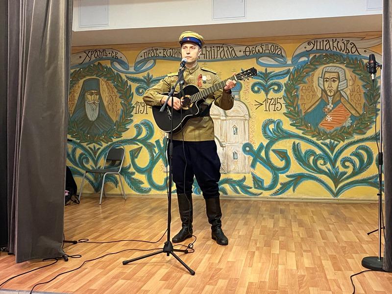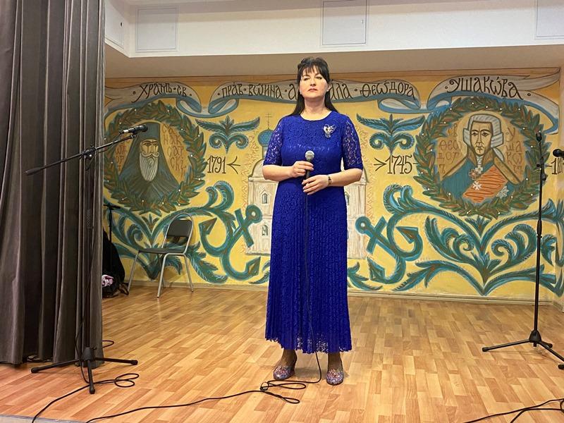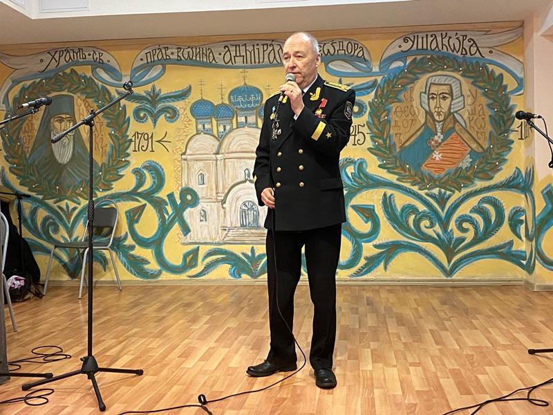 Центром программы стало исполнение новой песни об адмирале Ушакове и его храме "Колокола России", которую написала и исполнила поэт и музыкант, руководитель клуба авторской песни, Светлана Холодникова. Она исполнила новую песню вместе с ансамблем "Сударушки".
