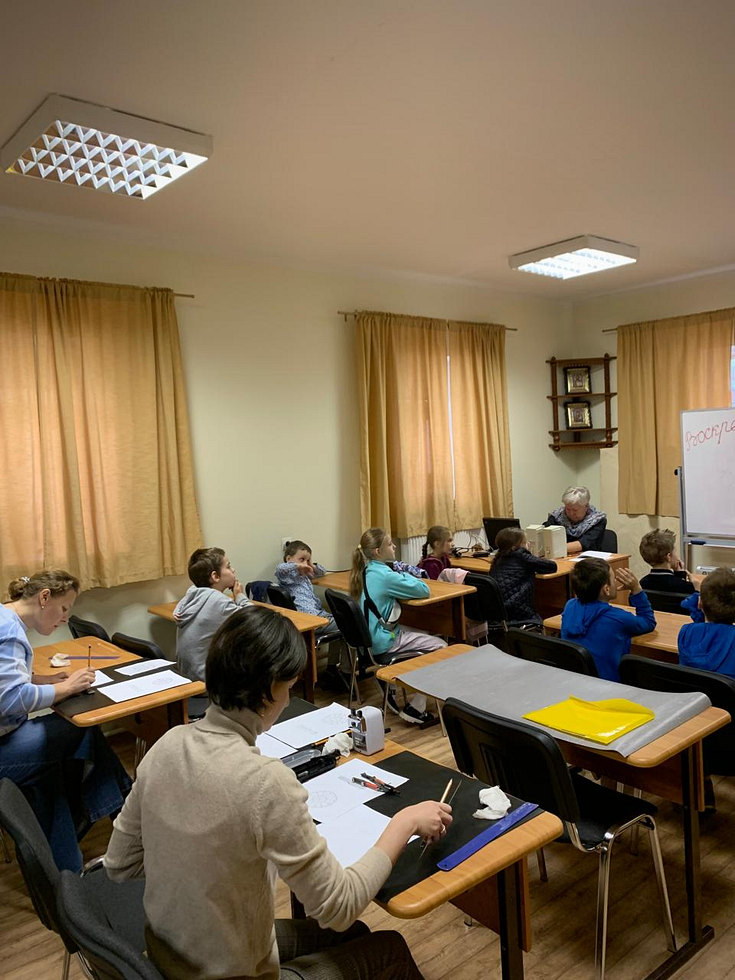 Также прошел первый урок хорового пения, на котором под руководством преподавателя Дианы Юрьевны дети очень старались правильно петь молитвы, поскольку в планах обучения, по благословению настоятеля храма Живоначальной Троицы в Конькове Высокопреосвященнейшего Митпрополита Кишиневского и всея Молдовы Владимира, освоение осмогласия и участие детского хора в Божественной Литургии.