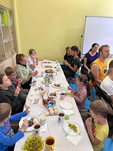 После совместной молитвы ученики детской и взрослой групп дружной компанией встретились на чаепитии, организованном по случаю начала занятий. Возглавил встречу настоятель храма иерей Николай Алешин. Взрослые и дети были искренне рады возможности вновь встретиться, пообщаться и совместно обсудить планы на предстоящий учебный год.