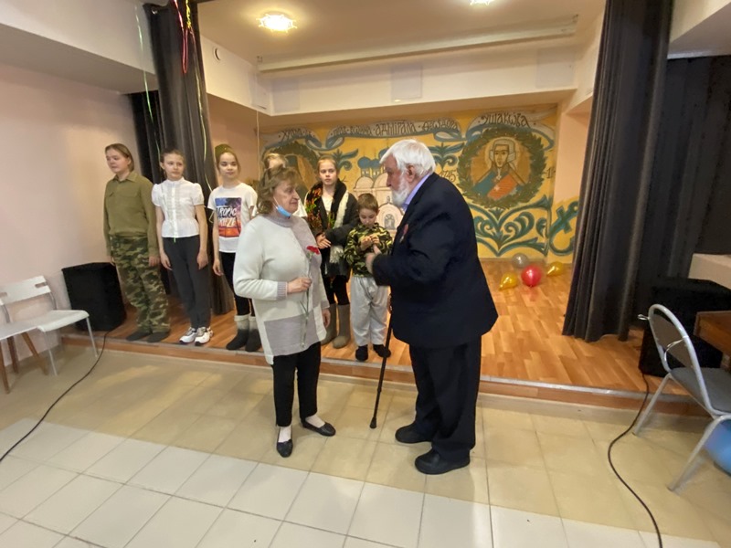 Они сердечно поблагодарили всех участников спектакля! Дети студии вручили ветеранам красные гвоздики.