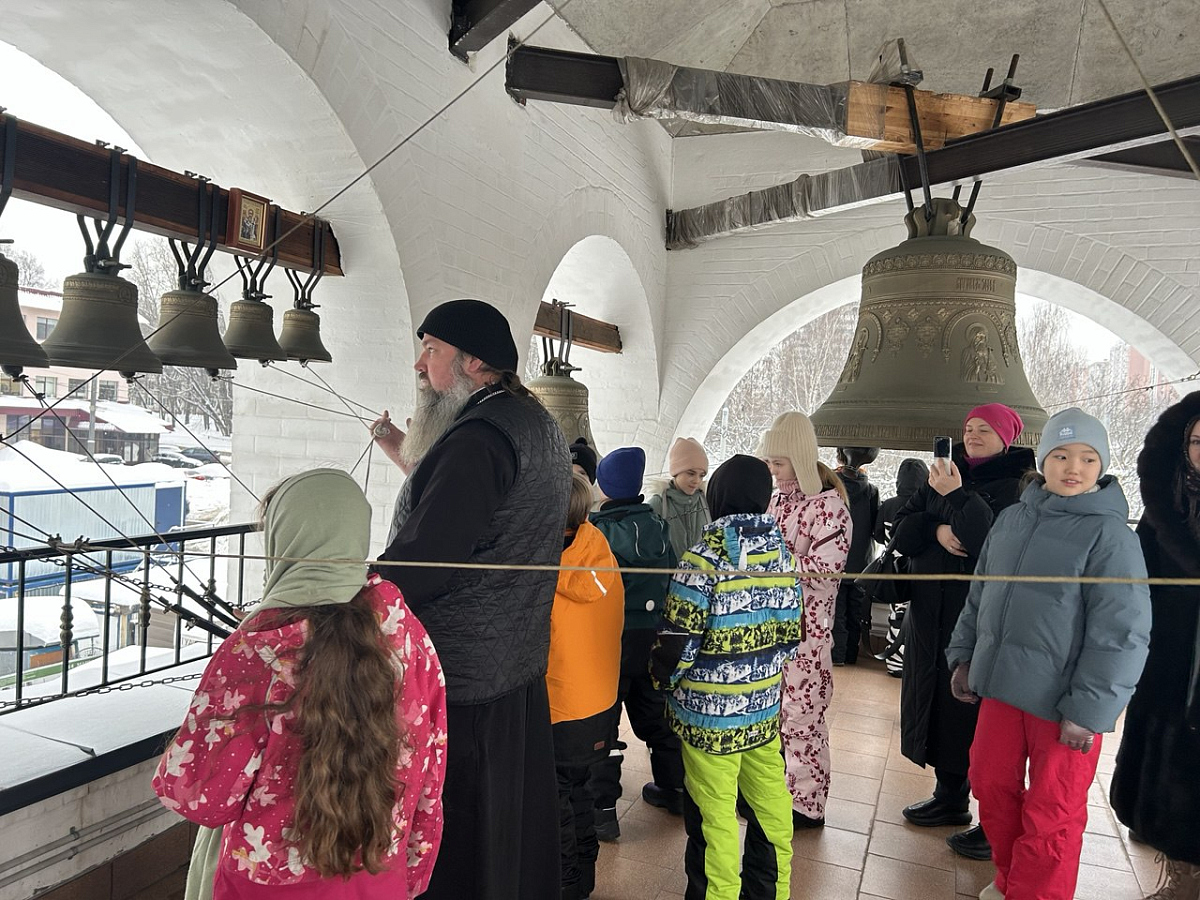 Продолжилась экскурсия на звоннице храма, где дети смогли не только услышать перезвон колоколов, но и сами смогли ударить в самый большой колокол - благовестник.