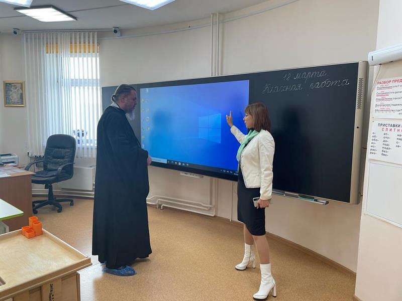 Настоятель встретился с директором ГБОУ РШИ № 32 Войтас Светланой Анатольевной и начальником информационно-аналитического отдела Жихаревой Еленой Николаевной.
