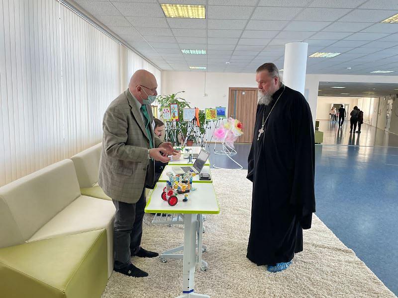 Настоятель лично посетил многочисленные помещения школы: аудитории, библиотеку, актовых зал, бассейн, медицинские и реабилитационные кабинеты, спортивные классы и многое другое, что создано для помощи детям и для их развития.