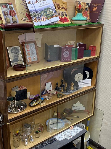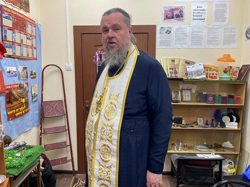 Тамара Александровна показала настоятелю экспонаты выставки: дорогие детские воспоминания, которые, не смотря на те грозные и тяжелые годы, греют душу.