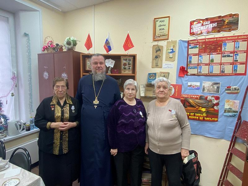 Игумен Дамиан имел встречу с председателем местного отделения РОО "Дети ВОВ" Дегтяревой Тамарой Александровной и с ее помощницами.