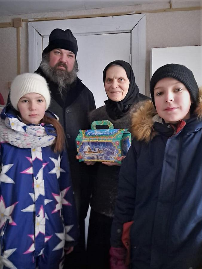Иерей Иоанн сказал теплые слова поздравления, пропел тропарь Рождества Христова и вручил сладкие подарки.