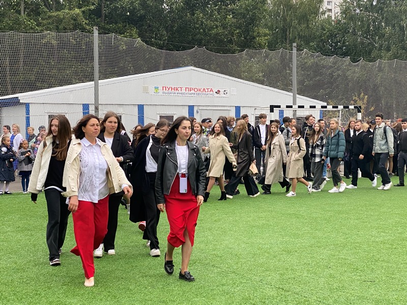 На площадку около школы торжественно вышли учащиеся 9 и 11 классов, которым предстоит ответственный выпускной год, а вслед за ними появились и многочисленные первоклашки, которые вступили на светлый путь образования.