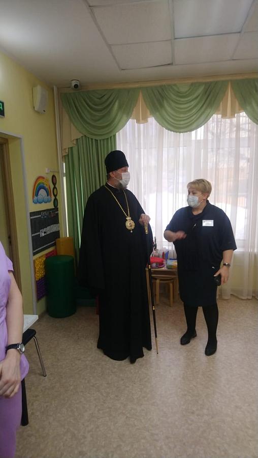 Митрополит Владимир в сопровождении сотрудников учреждения ознакомился с условиями проживания воспитанников - детей с ограниченными возможностями. Затем состоялась беседа с руководителями центра «Юнона», в которой были затронуты проблемы и вопросы дальнейшего сотрудничества.