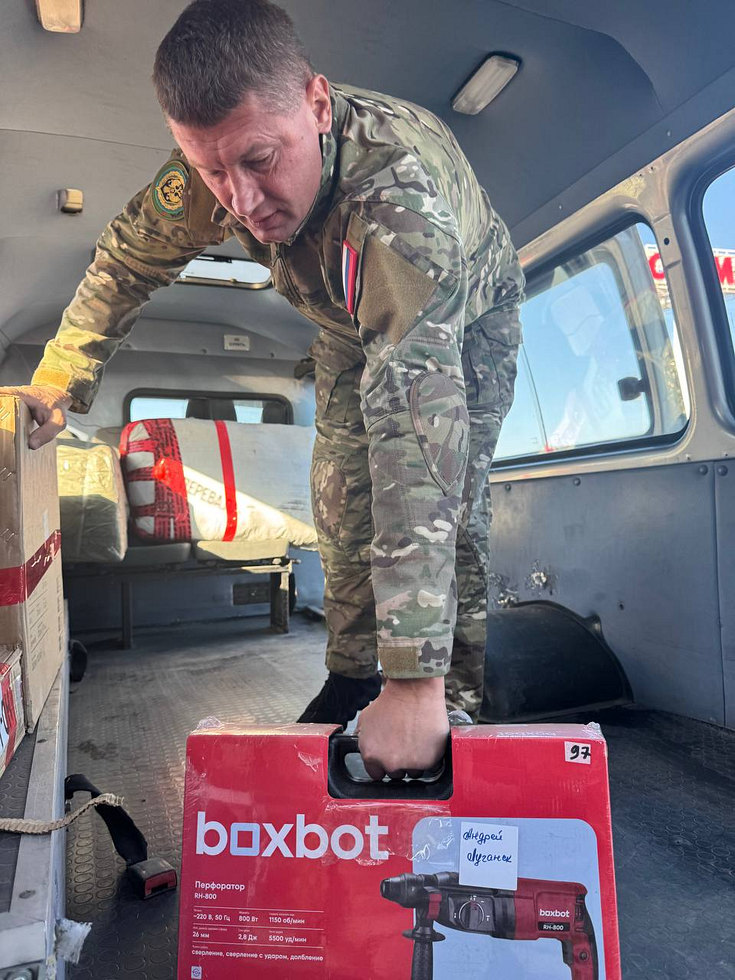 где уже ночью ребятам из медицинской роты передали для раненных военных медикаменты, физрастворы, жгуты Эсмарха и Ленинград-4. Также для хозяйственных нужд были передали инструменты, перфоратор, шуруповёрт, бензопилы, мебельный степлер, болгарка.