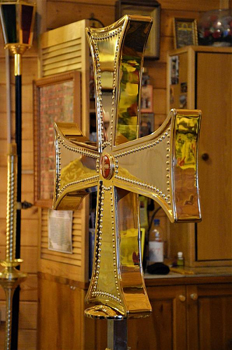 Торжественный Чин освящения Креста совершил настоятель храма иерей Иоанн Омелянчук в сослужении иерея Самуила Мнацаканова.