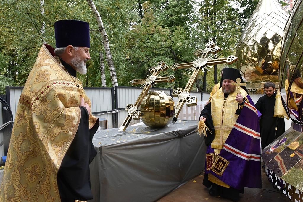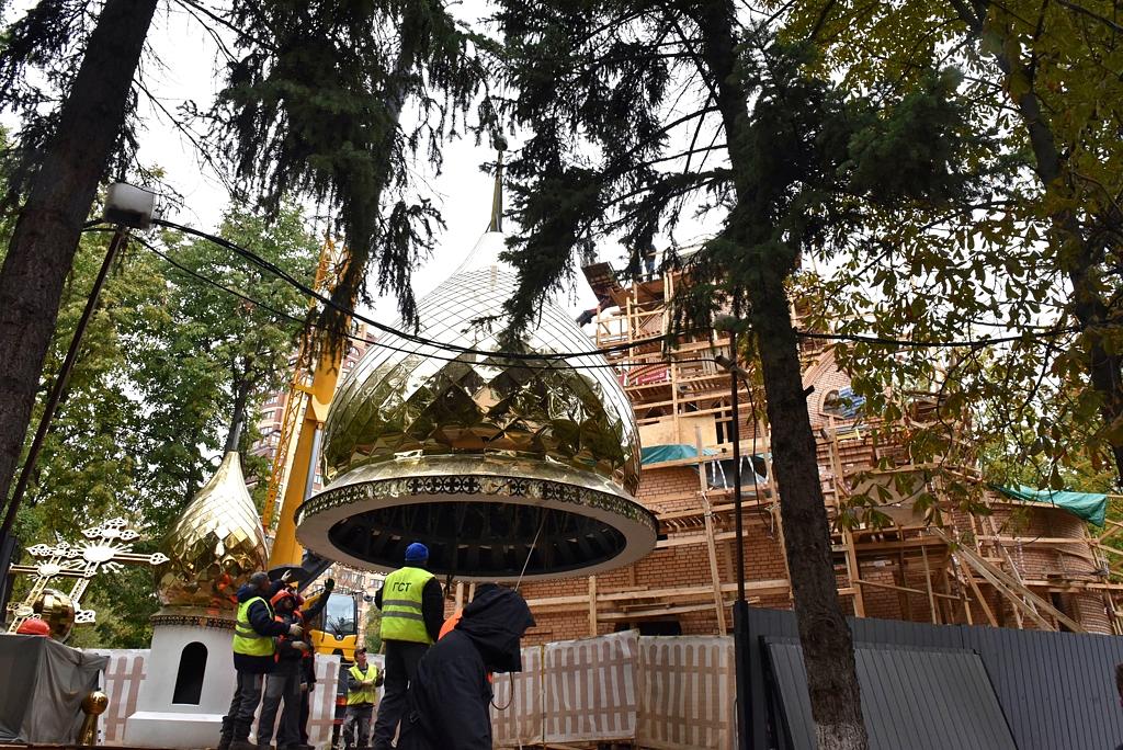 Купола храма покрыты нитридом титана «под золото». Благодаря такому напылению цвет устойчив к любым погодным воздействиям и, конечно же, не будет ржаветь. Общий вес куполов составил около 5 тонн: 3,5 тонны весит большой купол и 1,5 тонны вес маленького. Высота конструкций 8,5 метров и 5,8 метров соответственно. Все собравшиеся отметили, что храм на территории больницы возводится быстрыми темпами: специалисты уже приступили к внутренней отделке здания.