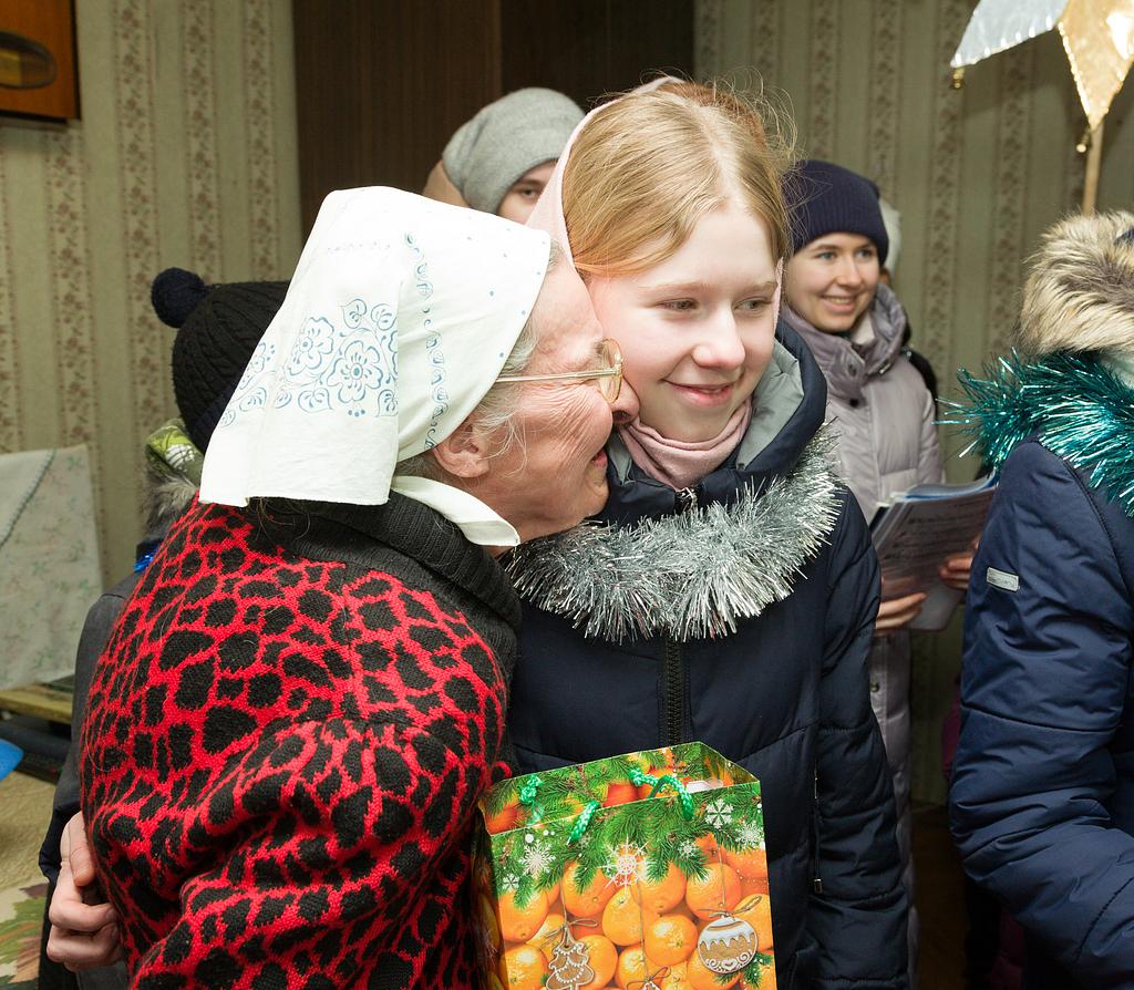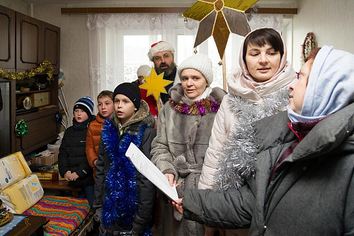 Более десяти адресов с обширной географией на карте – почти весь воскресный день духовенство и взрослые прихожане с детьми, молодежь и подростки поздравляли с Рождеством Христовым, пели праздничные тропари и святочные песни, дарили подаркии как могли делились радостью о родившемся Богомладенце.