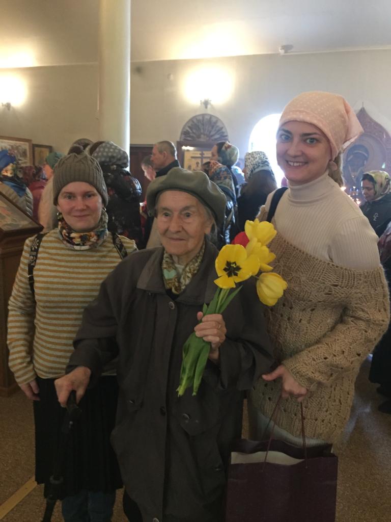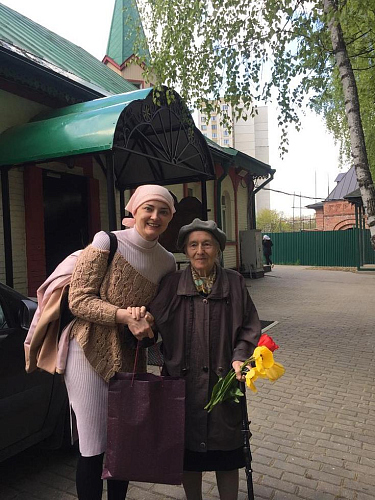 На Божественной Литургии и на панихиде смогла помолиться одна работница тыла, ее поздравили в храме и отвезли до дома. К остальным прихожанам-ветеранам добровольцы поехали домой.