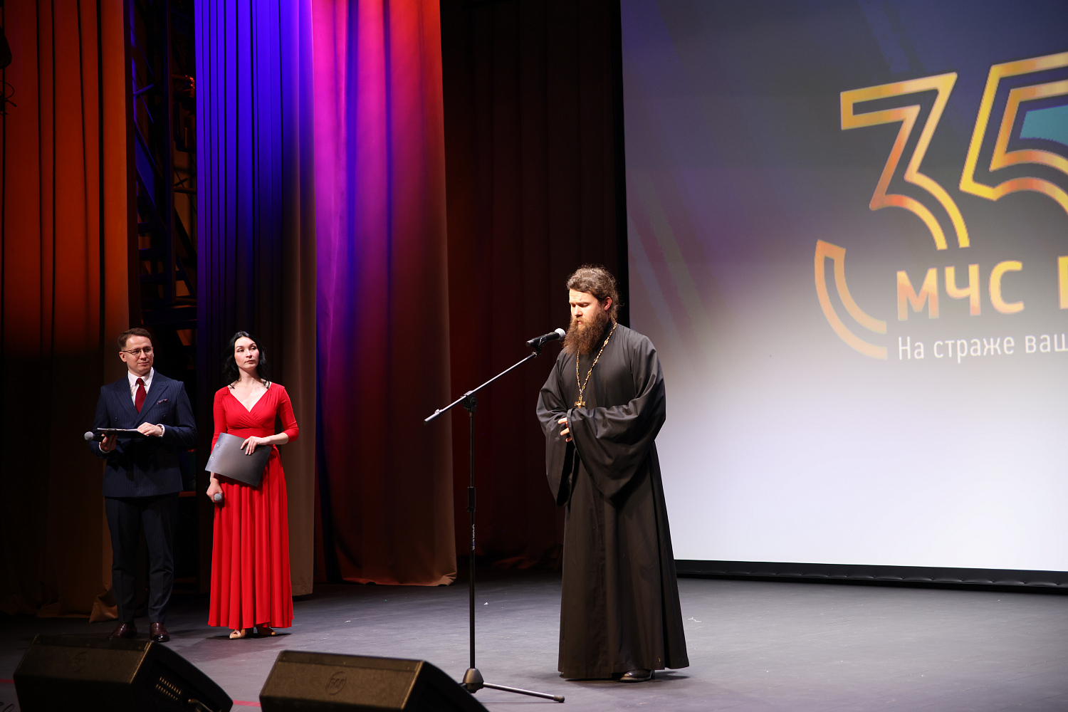 С поздравительным словом выступил ответственный по взаимодействию с вооруженными силами и правоохранительными органами Юго-Западного викариатства иерей Николай Алешин. Священнослужитель отметил значимость миссии и важность профессии спасателя и выразил глубокую признательность работникам МЧС за их мужество, верность долгу и постоянное стремление помогать другим людям. Также подчеркнул, что работа спасателя — это не просто профессия, а христианский подвиг самоотвержения, воплощающий заповедь о любви к ближнему: «Нет больше той любви, как если кто положит душу свою за друзей своих».