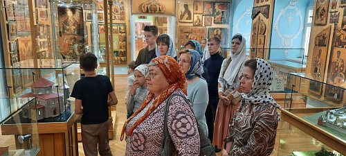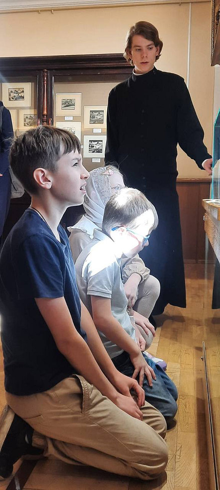 После совместной трапезы, отдохнув и подкрепив силы, паломники направились в музей "Ризница", где их ожидала еще одна экскурсия. Экскурсовод Ольга объяснила детям значение данного слова, и перед глазами паломников предстала во всей своей красе роскошь старинных Богослужебных предметов, над изготовлением которых трудились лучшие русские и зарубежные мастера прошлых веков.