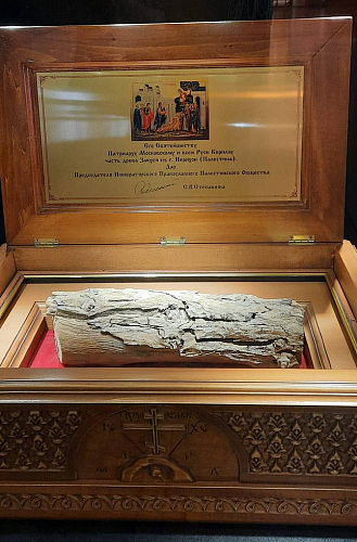 В залах Ризницы царит полумрак, который оттеняет блеск золота и драгоценных камней, украшающих оклады риз и чаш. Самое сильное впечатление на детей произвела скромная, темная, вытканная из грубой ткани, почти без узоров фелонь Преподобного. А также покров с изображением Сергия Радонежского в полный рост. С волнением и трепетом паломники смотрели на две иконы, написанные в далеком 14 веке, именно ими благословили на будущий монашеский путь Преподобного Сергия его Святые родители.