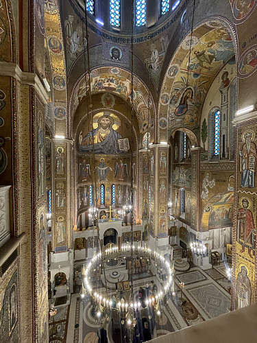 Основная часть храмасоздана и украшена по византийским канонам. Мозаичные изображения расположены по определённой системе. Сочетание классического наследия с византийскими и раннехристианскими традициями создают неповторимую стилистику внутреннего убранства храма.