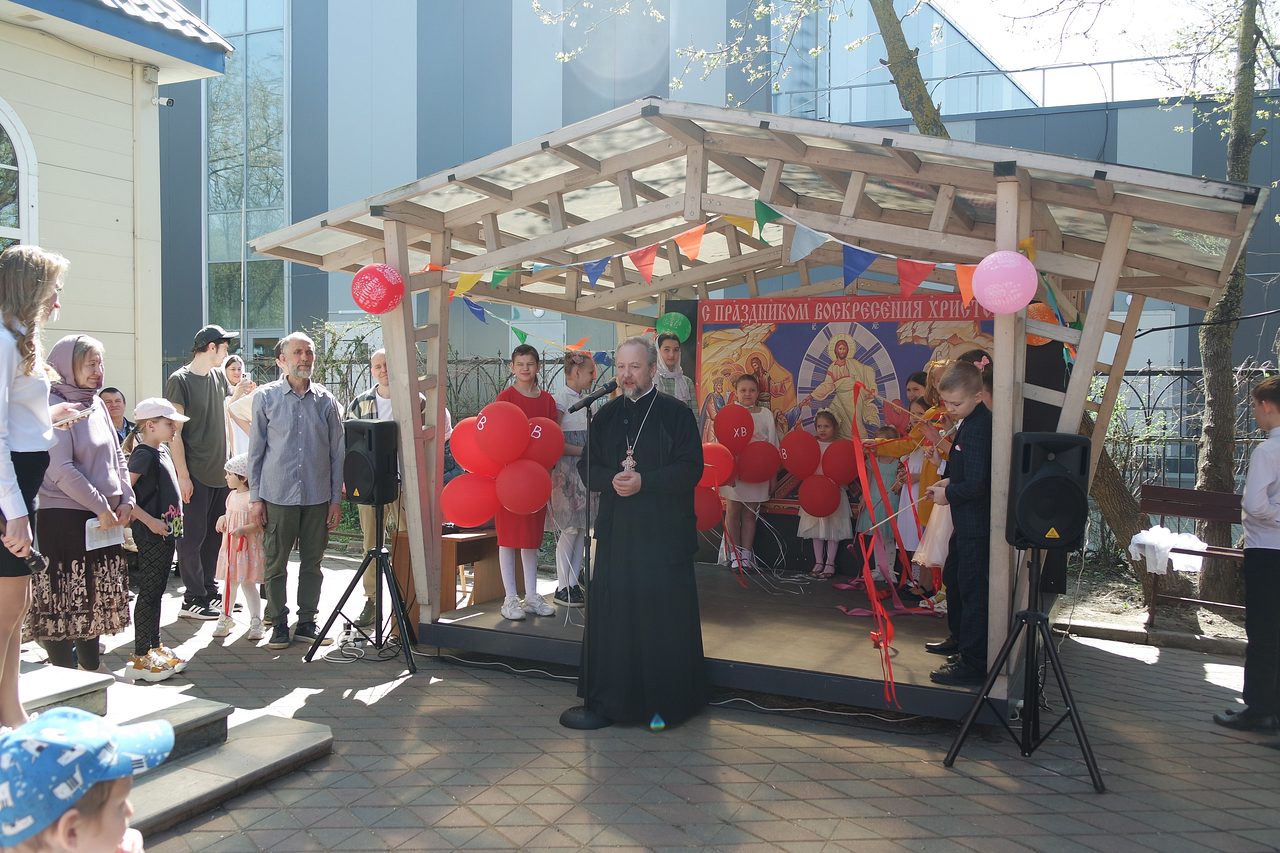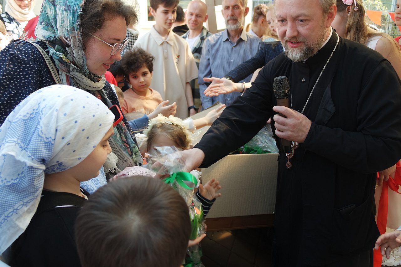 По завершении праздника настоятель храма поблагодарил детей за выступление, вручил каждому ребёнку подарки и еще раз поздравил детей и родителей со Светлым Христовым Воскресением.