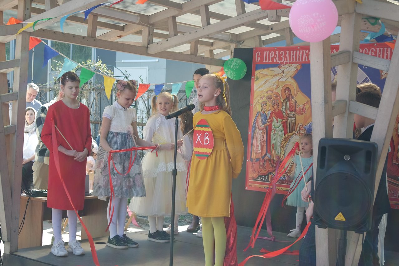 20 апреля 2025 года, в праздник Светлого Христова Воскресения, в храме Священномученика Серафима, митрополита Петроградского г. Москвы, по окончании Божественной Литургии, по благословению настоятеля иерея Максима Глухих, прошел Пасхальный детский праздник.