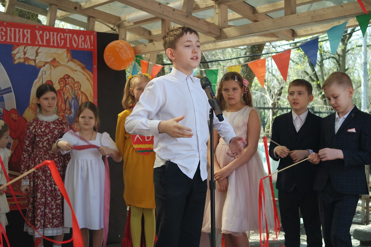 Дети порадовали родителей, гостей и всех прихожан праздничным концертом «Хвалите Господа с небес», посвященный празднику Воскресения Христова.