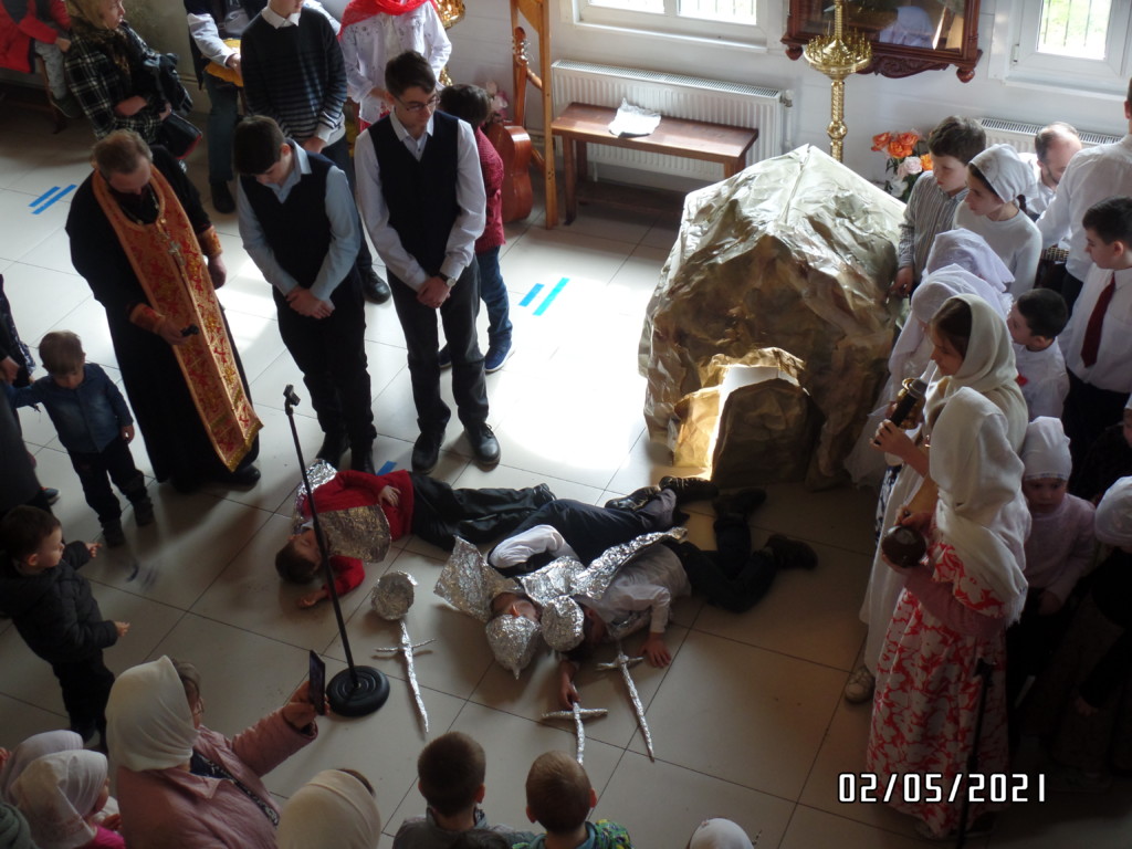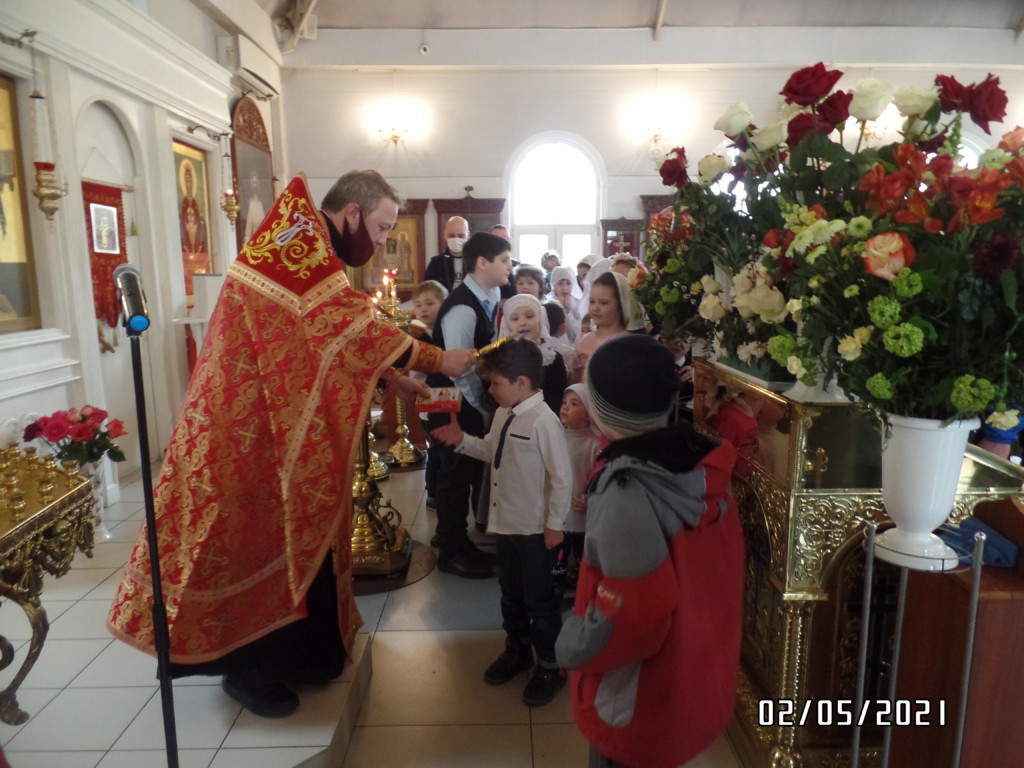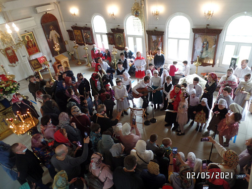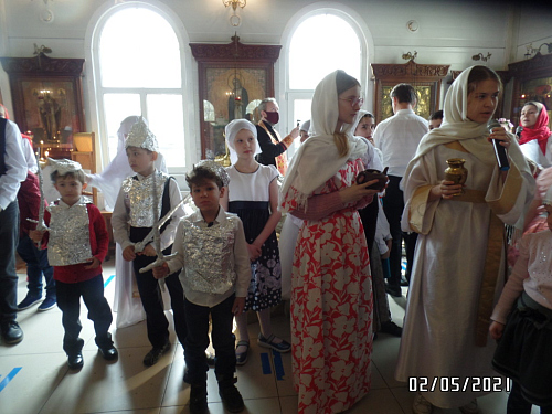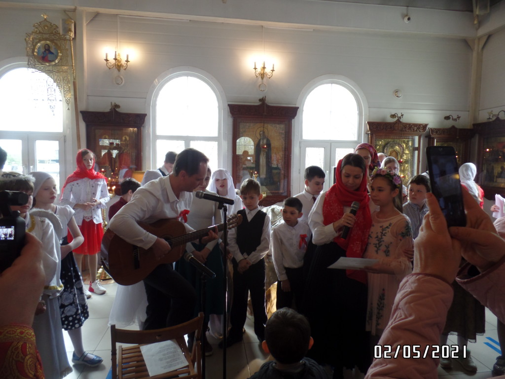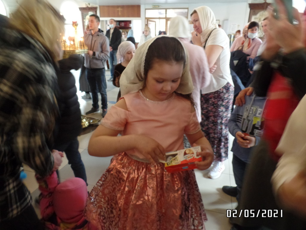 2 мая 2021 года, в день Светлого Христова Воскресения, в храме священномученика Серафима, митрополита Петроградского, в Южном Бутове состоялся праздничный Пасхальный молебен с причащением детей.