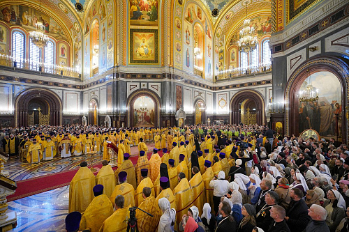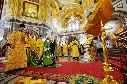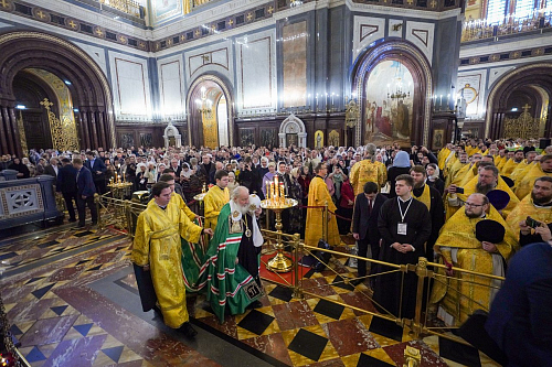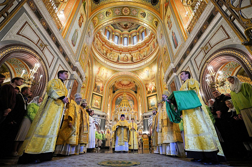 Богослужебные песнопения исполнил Патриарший хор Храма Христа Спасителя (регент — И.Б. Толкачев).