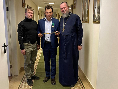 Роман Юрьевич в свою очередь передал в музей Патриаршего подворья морской кортик, памяти адмирала Ф.Ф. Ушакова.