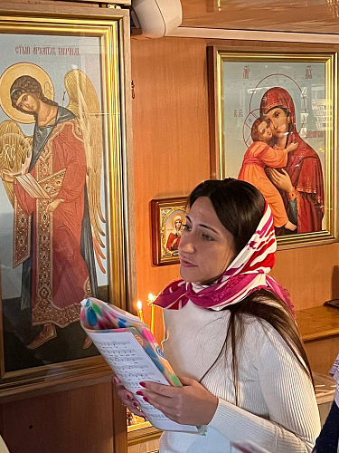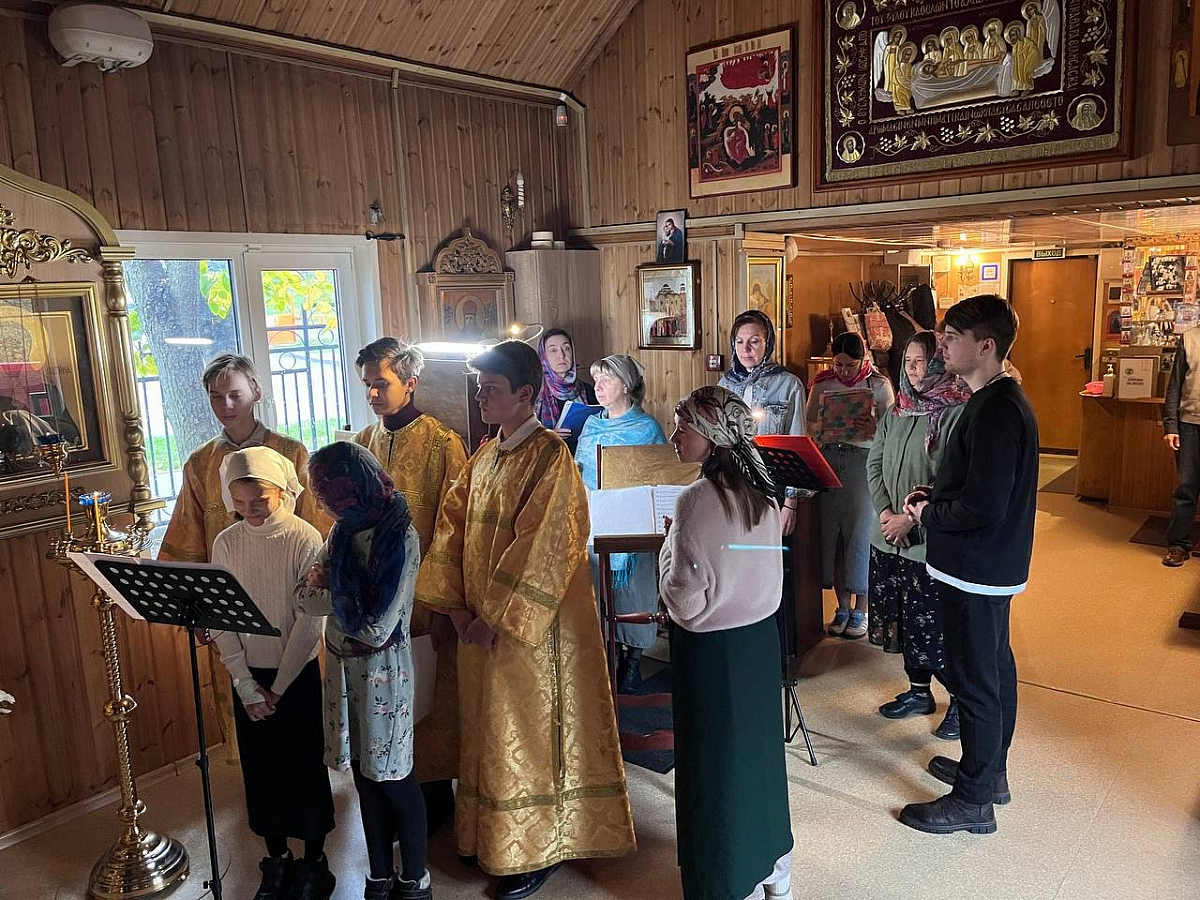 Под руководством регента Виктории Писаренко ребята исполнили антифоны “Хвали душе моя Господа” и “Единородный сыне” знаменного распева.