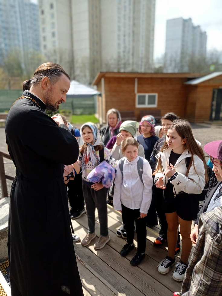 25 апреля 2024 года по благословению и.о. настоятеля храма Великомученицы Анастасии Узорешительницы в Тёплом Стане иерея Димитрия Борсука прошла первая предпасхальная экскурсия для учеников 5 класса школы 1101.
