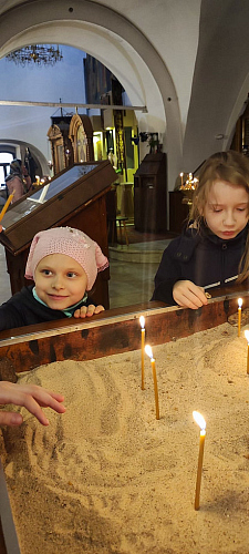 Во время пешей прогулки до храма дети познакомились с историей Тверского бульвара, узнали где изначально находился памятник А.С. Пушкина, посетили Храм Рождества Пресвятой Богородицы в Путинках и Высоко-Петровский монастырь.