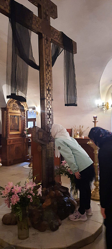 Экскурсия продолжилась посещением храма Преподобного Сергия Радонежского в Крапивниках. Ребята познакомились с историей, архитектурой и достопримечательностями первого храма в Белом городе Москвы, посвященного преподобному Сергию. Узнали, как создавался уникальный крест-мощевик — Кийский крест Патриарха Никона. После чего поклонились особо чтимым святыням храма.