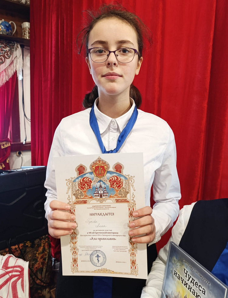 Ребята в своем интервью организаторам после окончания викторины поблагодарили преподавателей Воскресной школы за подготовку и отметили, что одержали победу по милости Божией. Анна Гусева также получила отдельную грамоту как самый активный игрок команды.
