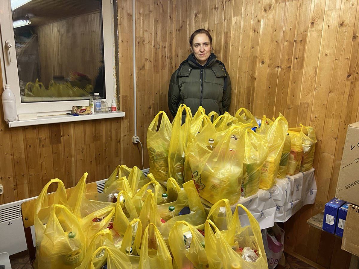 Всего было роздано 35 наборов (сахар, мука, масло растительное, макароны, крупы и сладости).