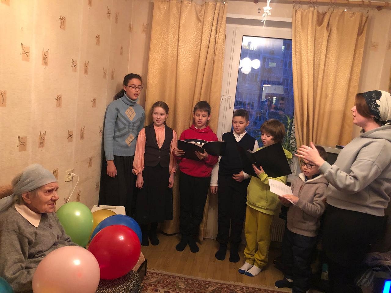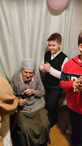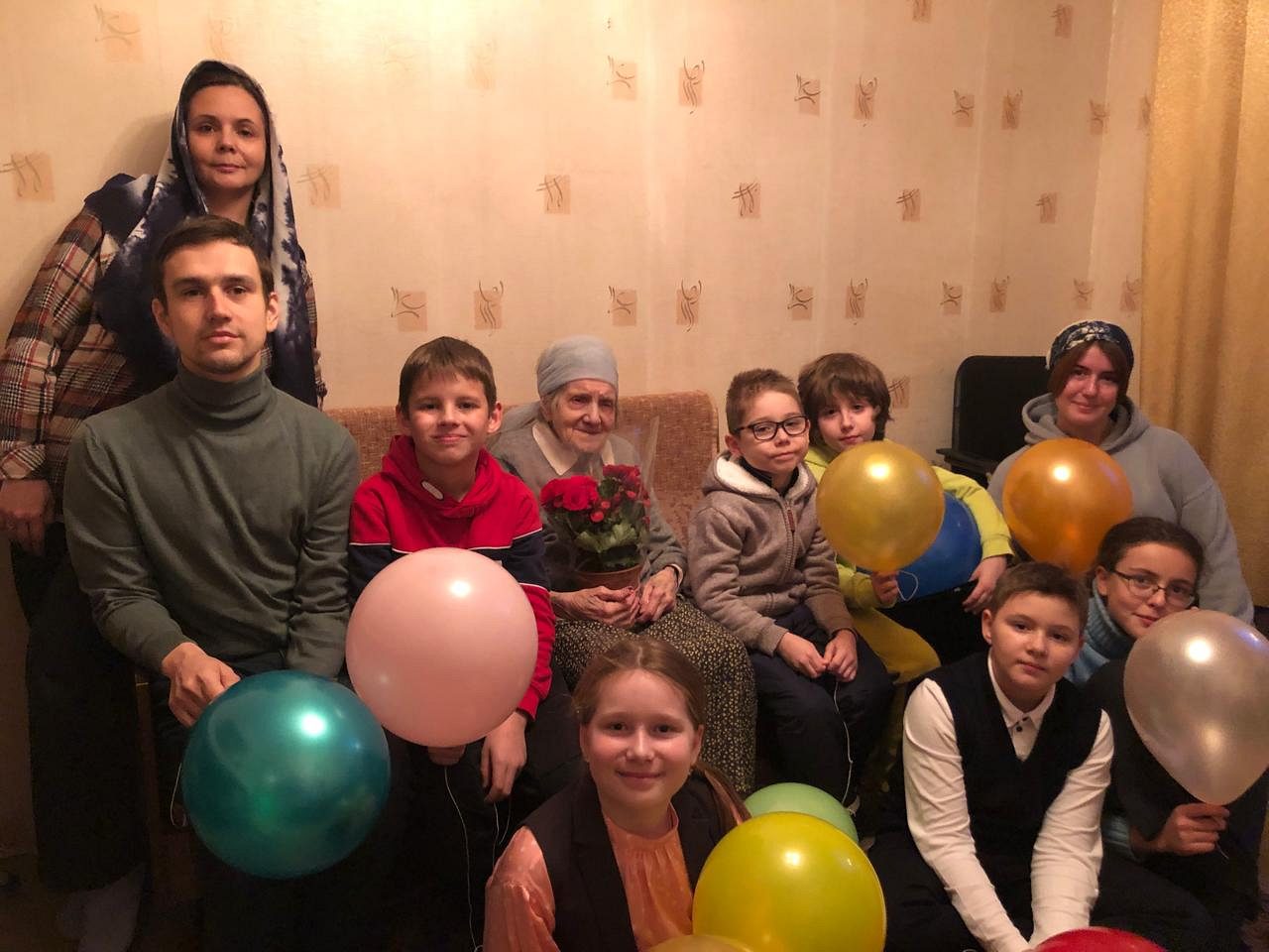 19 ноября 2024 года социальной службой храма святой великомученицы Анастасии Узорешительницы в Теплом Стане, активом молодежной организации и детским хором воспитанников Воскресной школы по благословению и.о. настоятеля иерея Димитрия Борсука было организовано поздравление подопечной Марии Андреевны, которой исполнился 101 год.