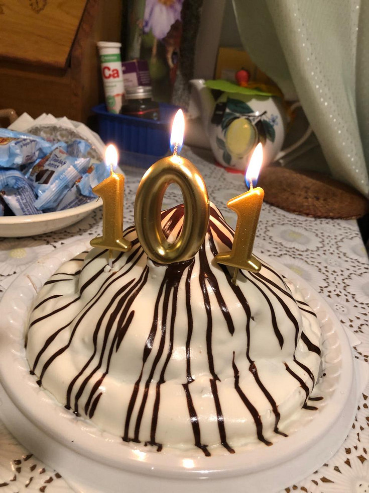 Затем все вместе посидели за столом с подаренным праздничным тортом с цифрами 101, чаем и сладостями. Мария Андреевна с радостью поделилась историями о прожитых годах, на которые выпало трудное время войны, тяжелого труда в послевоенные годы, где бывало и холодно, и голодно.