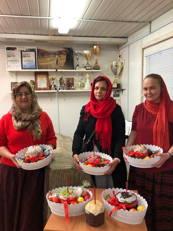 5 и 6 мая 2024 года, в день Светлой Пасхи Христовой и в первый день Светлой седмицы, социальная служба храма святой великомученицы Анастасии Узорешительницы в Теплом Стане по благословению и.о. настоятеля иерея Димитрия Борсука совместно с молодежной группой поздравили с Пасхой Христовой подопечных на дому. Добровольцы поздравили их со Светлым Христовым Воскресением, пропели тропарь Пасхи и вручили подарочные наборы из освященных куличей, яиц и сладостей.