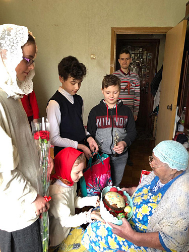 Всех подопечных поздравили песнопениями, подарили праздничные пасхальные продуктовые наборы и цветы.