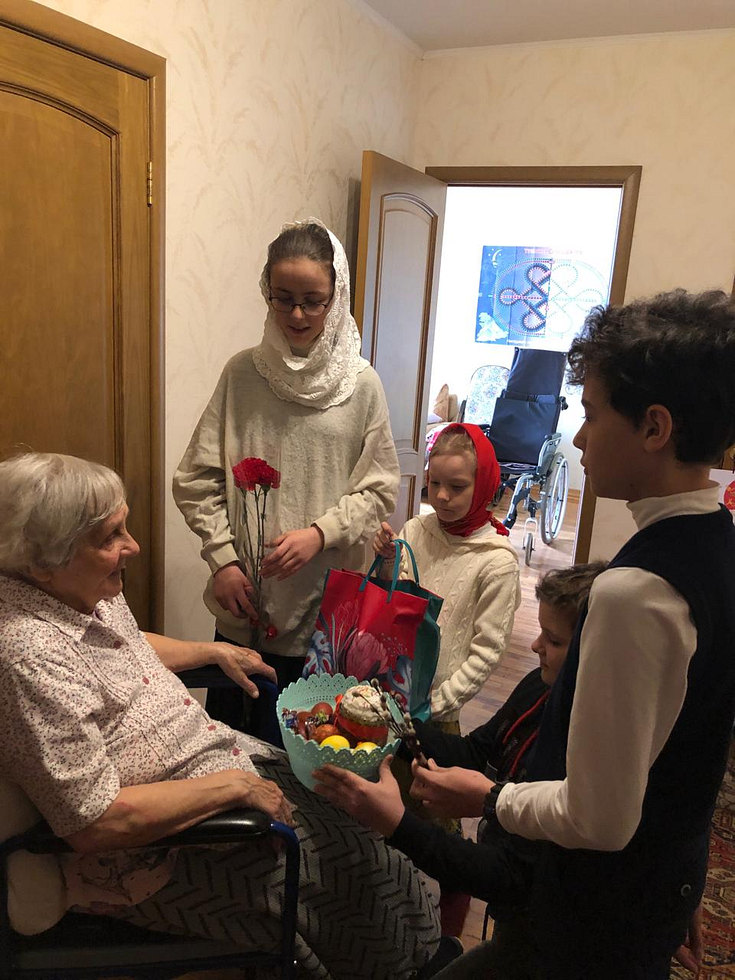 9 мая 2024 года по благословению и.о. настоятеля храма Великомученицы Анастасии Узорешительницы в Тёплом Стане иерея Димитрия Борсука хор воспитанников Воскресной школы под руководством Марии Вадимовны Никулиной, актив молодежной организации, а также представители социального направления под руководством Елена Михайловны Йосипенко посетили ветеранов войны и долгожителей из числа прихожан.