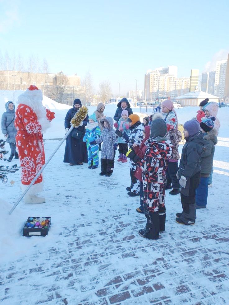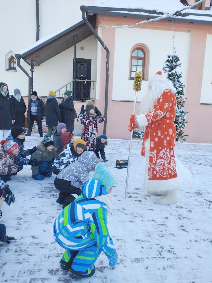 В этот раз, сразу после утренней Рождественской службы самых маленьких прихожан храма пришёл поздравить Дед Мороз.