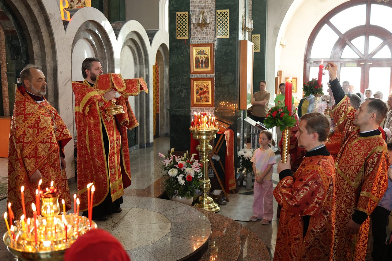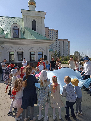 Утром по окончании Божественной литургии на территории храма прошел Пасхальный праздник, который начался выступлением приходского коллектива «Веретенце». Прозвучали пасхальные стихи и русские песни. В радостной атмосфере праздника водили хороводы, участвовали в играх и забавах.