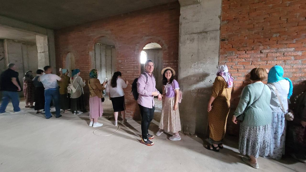 Далее настоятель храма раздал всем присутствующим белые мелки и пригласил посетить цокольный этаж строящегося храма сщмч. Серафима, там каждый смог написать на кирпичной кладке алтарной стены свои имена и имена сродников, для поминовения.