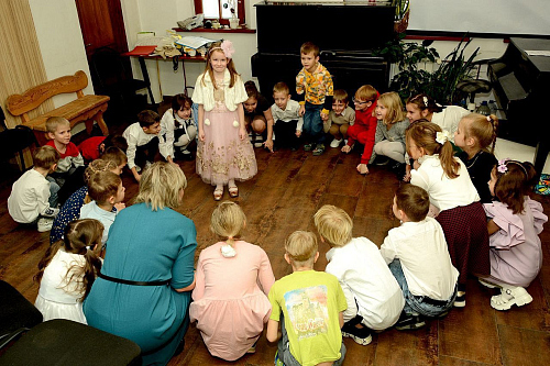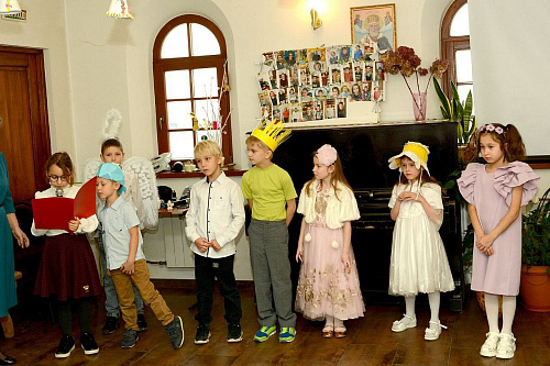 Ребята вместе со своими преподавателями подготовили чудесный концерт: дети рассказывали стихи про своих Ангелов-хранителей, пели песни и даже подготовили настоящую театральную постановку "Антошкина клумба".