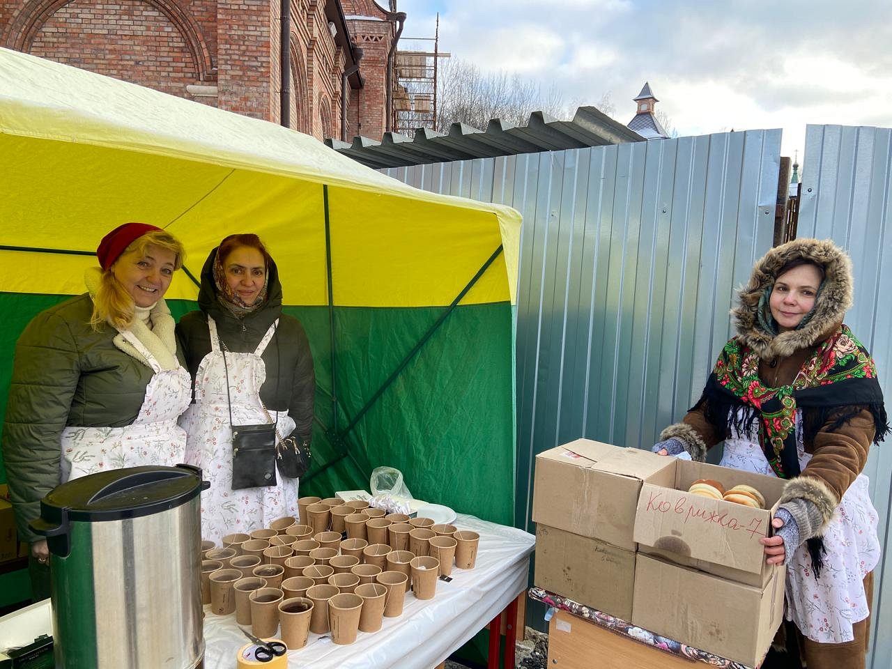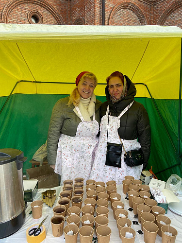 Также прихожане могли приобрести горячий чай и пирожки.