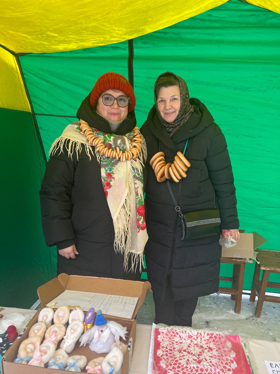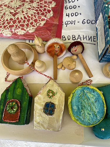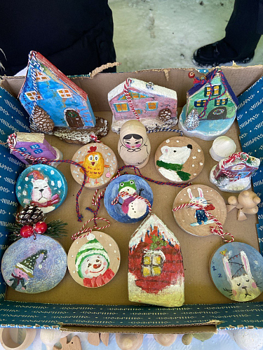 После Божественной Литургии прихожанам были предложены поделки и сувениры, созданные детьми Воскресной школы, а также добровольцами социальной службы. Поделки — в основном игрушки на елку — были изготовлены из глины, гипса, бумаги, шерсти, а также из натурального камня, дерева и живых веточек ели.
