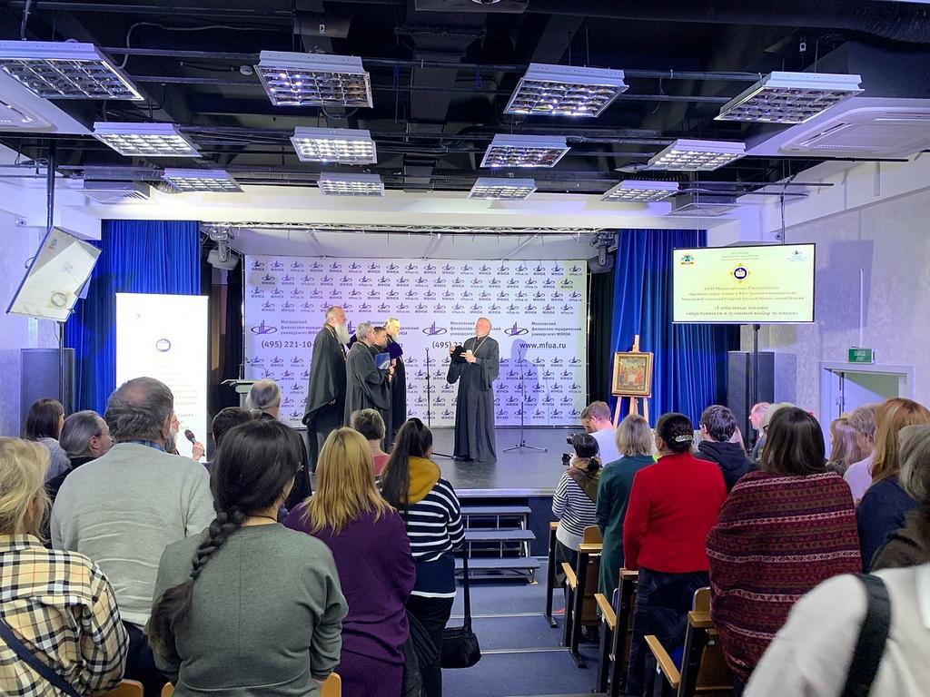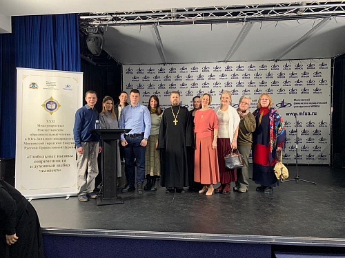 24 ноября 2022 года представители храма святого пророка Божия Илии в Северном Бутово города Москвы приняли участие в региональном этапе XХXI Международных Рождественских образовательных чтений в Юго-Западном викариатстве города Москвы на тему «Глобальные вызовы современности и духовный выбор человека», проходившем в актовом зале МФЮА.