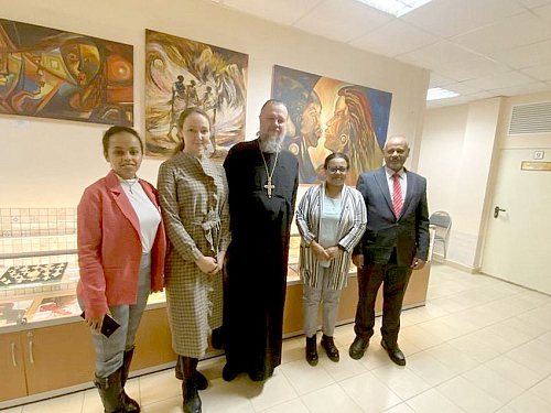 После экскурсии гостей приветствовал настоятель храма игумен Дамиан (Залетов). Дорогие гости осмотрели Воскресную школу Патриаршего подворья и дом причта. Затем состоялось чаепитие и обмен мнениями и впечатлениями от выставки и культурного общения народов России и Эфиопии.